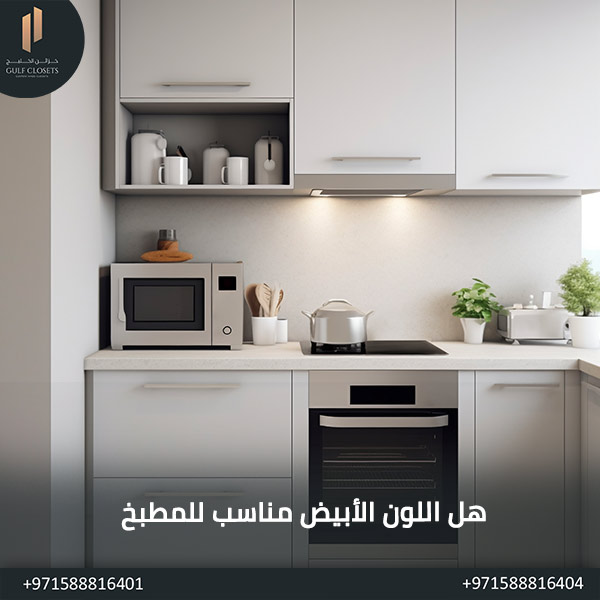 يعزز الشعور بالاتساع والنظافة، مما يجعله اللون المثالي للمطابخ الصغيرة أو ذات الإضاءة المحدودة، كما أنه اللون المناسب للأنماط المختلفة سواء كان المطبخ عصري أو تقليدي، أو كلاسيكي.